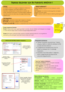 Araştırmalarımda, birden fazla faktörün etkisini aynı anda değerlendirmem gerektiğinde sıkça başvurduğum yöntemlerden biri iki faktörlü ANOVA’dır. Özellikle ilişkisiz ölçümlerle (yani her bir gözlemin yalnızca bir kez ölçüldüğü durumlarda) yapılan analizlerde, faktörlerin bağımlı değişken üzerindeki ana etkilerini ve birbirleriyle olan etkileşimlerini anlamak için oldukça güçlü bir tekniktir. Aşağıdaki görselde, bu yöntemin varsayımlarını, temel mantığını ve SPSS’te nasıl uygulandığını özetledim. Bu sayfayı kendi derslerimde ve danışmanlık süreçlerimde sıkça kullanıyorum.