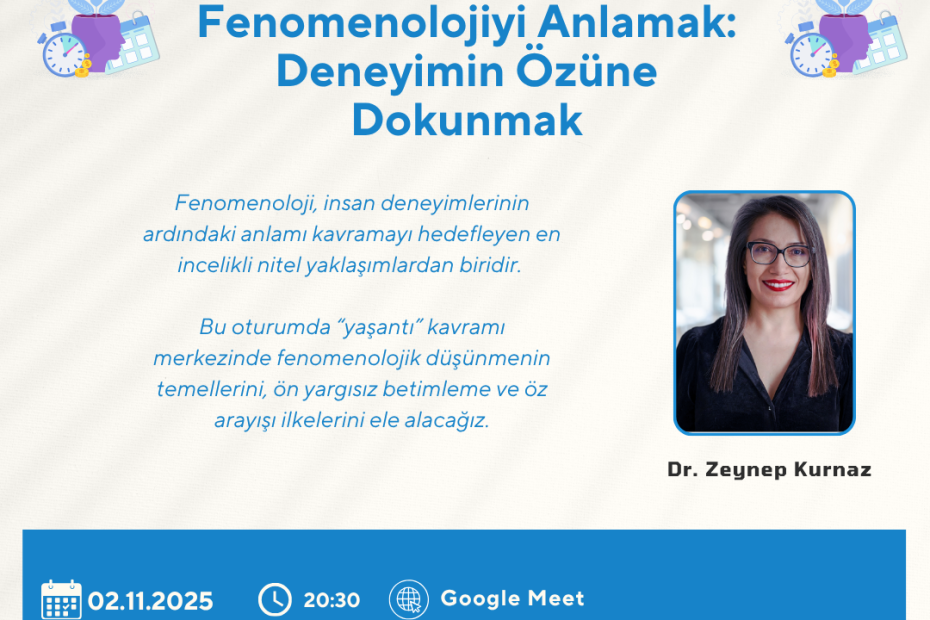 Fenomenoloji, insan deneyimlerinin ardındaki anlamı kavramayı hedefleyen en incelikli nitel yaklaşımlardan biridir. Bu oturumda “yaşantı” kavramı merkezinde fenomenolojik düşünmenin temellerini, ön yargısız betimleme ve öz arayışı ilkelerini ele alacağız. Katılımcılar,… Daha fazlasını oku »Fenomenolojiyi Anlamak: Deneyimin Özüne Dokunmak