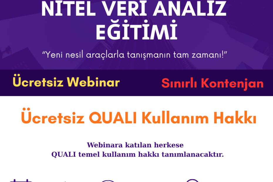 Araştırmalarınızda geleneksel yöntemleri geride bırakıp yeni nesil araçlarla tanışmanın tam zamanı! Nitel veri analizi süreçlerinizi hızlandırmak, verilerinizi daha derinlemesine ve kolayca analiz etmek için sizi “Quali ile Nitel Veri Analiz… Daha fazlasını oku »Quali ile Nitel Veri Analiz Eğitimi